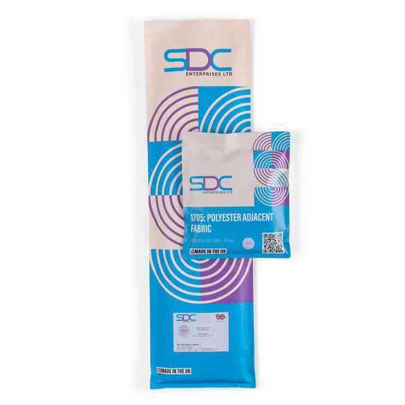 ISO 105-F04. For use as an adjacent fabric when testing fabrics for Colour fastness to washing and wet contact tests, ISO 105 Group C and Group E. It can be purchased by the metre, in a 5 metre pack or in 10cm x 4cm cut pieces.