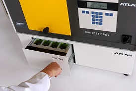 The SUNTEST CPS+ is used to test for property changes of materials caused by sunlight, temperature and moisture in a short period of time. Product changes happening outdoor or indoor over months or years, such as fading, yellowing or embrittlement can often be simulated within weeks inside a SUNTEST.