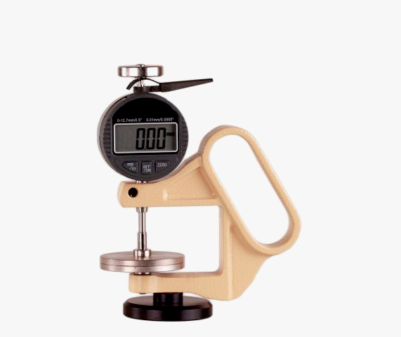 Thickness gauge to determine the thickness of textiles, fleece, floor coverings, leather etc. This low cost thickness gauge is suitable for quick comparison measurements.